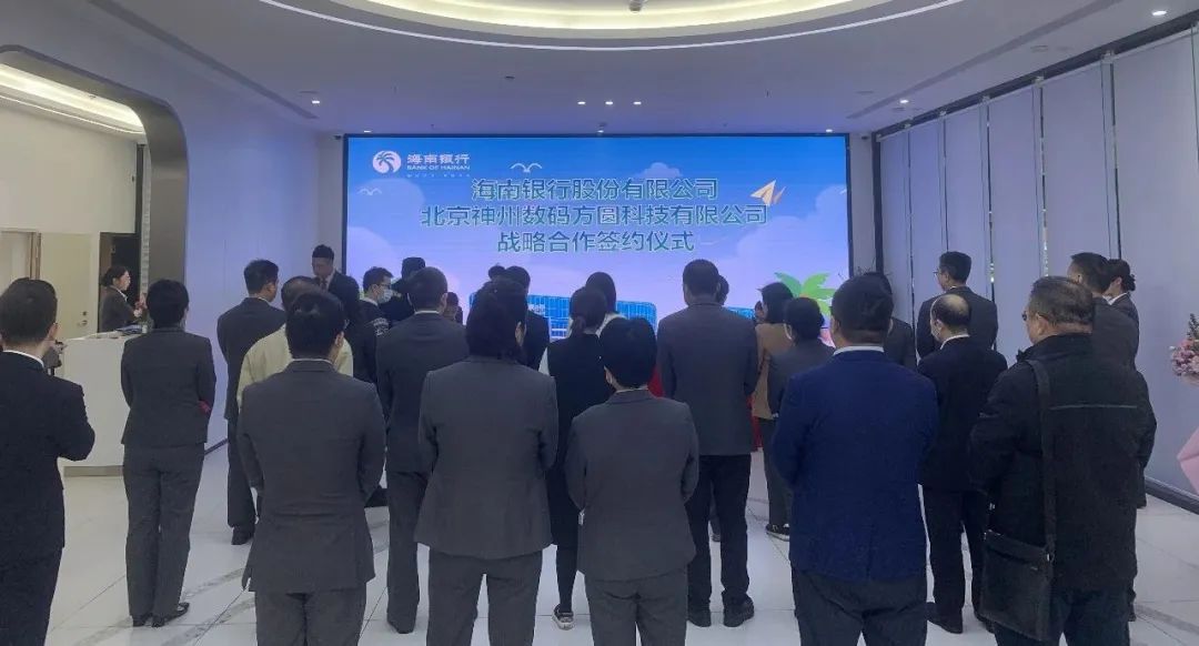2023年2月1日上午,在海南银行金龙路支行开业的喜庆日子里,海南银行与神州信息全资子公司北京710公海寰宇方圆科技有限公司双方签署战略合作协议。海南银行与神州方圆把海口金龙路支行开业契机作为签约合作的新起点,双方秉持“夯实合作基础、拓宽合作领域、创新合作模式”的原则,围绕海南预付式消费新模式展开全面深入的合作,充分发掘、利用海南银行本土深耕发展的场景金融和神州方圆区块链、数字人民币技术领域的优势,整合双方资源、业务发展和产品延伸,开展更深层次、更宽领域、更高水平的战略合作。在二十大精神的指引下,双方携手进一步优化海南自贸港营商环境的建设,向全国打出一张海南省数字经济的新名片。