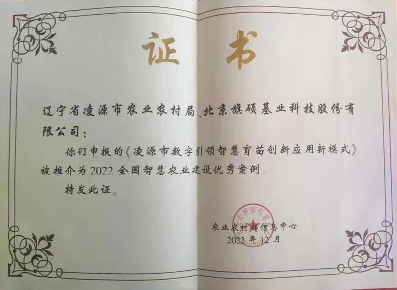 2022年,神州信息申报的“凌源市数字引领智慧育苗创新应用新模式”获评全国智慧农业建设优秀案例。凌源数字农业项目通过有效应用物联网、AI、大数据中心、语音识别等创新技术,实现自动调节室内气候,大数据自动采集和智能分析,跟踪操作流程并可视化呈现,对环境信息智能预警等功能。项目整体在化肥、农药、灌溉用水方面节省了30%人工,促进了增产增收,劳动生产率提高20%,单位面积产量提升10%以上,取得了显著经济社会效益。