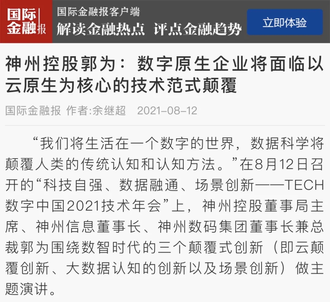 神州控股郭为:数字原生企业将面临以云原生为核心的技术范式颠覆